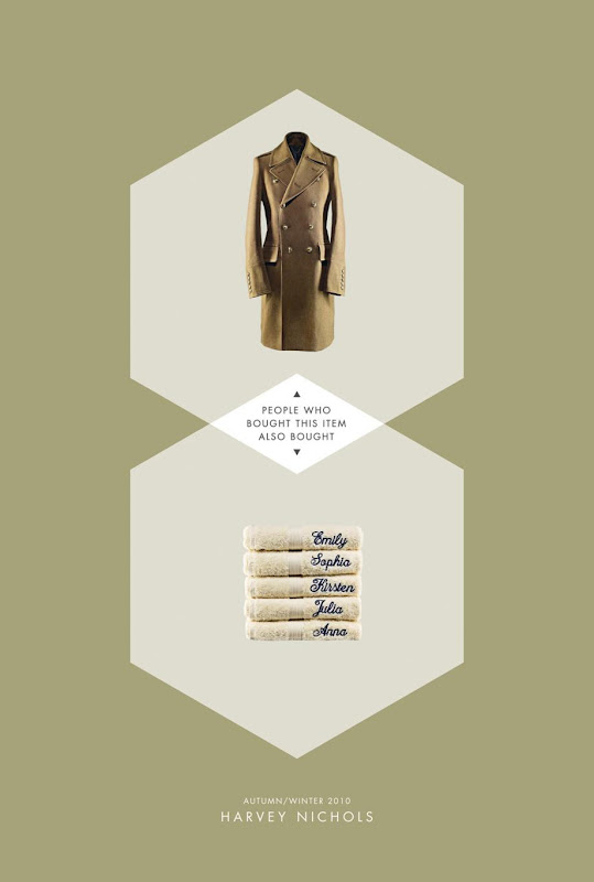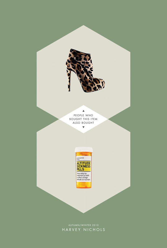 Interesting set of ads promoting the Harvey Nichols Autumn/Winter 2010 collection. People who bought these Harvey Nichols items also bought tasers, altitude sickness pills, pepper spray, a defibrillator, an evil eye charm, lipstick stain remover, smelling salts, self defense books and airhorns. I like!! The ‘Evil Eye Charm’ won the PRINT GRAND PRIX at the Dubai Lynx 2011. The rest won GOLDs.