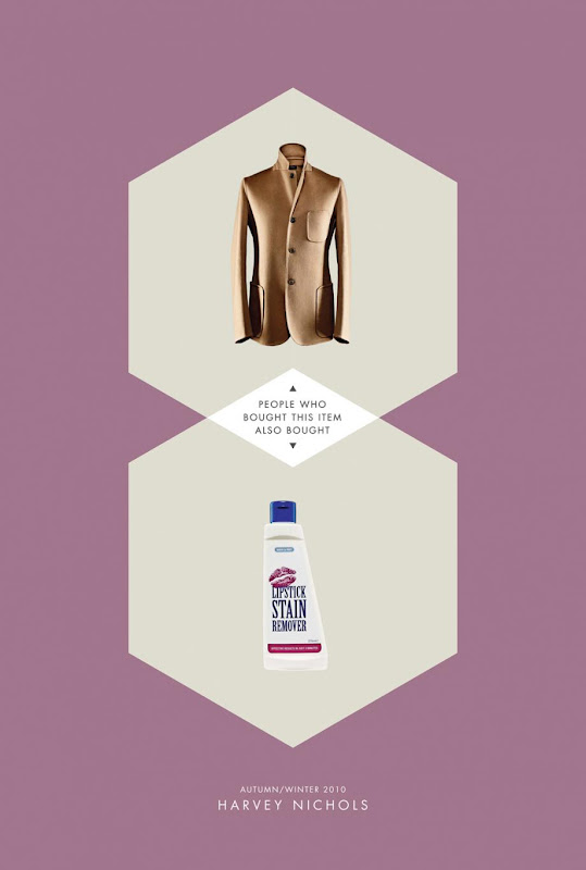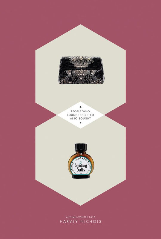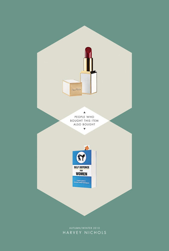Interesting set of ads promoting the Harvey Nichols Autumn/Winter 2010 collection. People who bought these Harvey Nichols items also bought tasers, altitude sickness pills, pepper spray, a defibrillator, an evil eye charm, lipstick stain remover, smelling salts, self defense books and airhorns. I like!! The ‘Evil Eye Charm’ won the PRINT GRAND PRIX at the Dubai Lynx 2011. The rest won GOLDs.